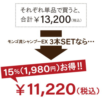 モンゴ流シャンプーEX 3本 【組合せ自由自在】 コンディショナーも選べる! スカルプシャンプー 育毛シャンプー 送料無料 薄毛 抜け毛 頭皮 男性用 メンズ ふけ かゆみ ボリューム シャンプー 女性用 オイリー 脂性 ドライ スカルプ スカルプD eeper ランキング 1位