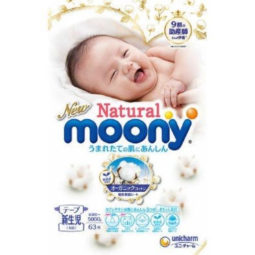 『【4個セット】ナチュラル ムーニー新生児 お誕生〜5000g 63枚入×4個セット』ベビー 赤ちゃん 紙おむつ テープタイプ オーガニックコットン 商品紹介 表面シートにオーガニックコットンを配合しやわらかい肌触りを実現。