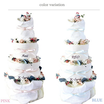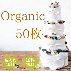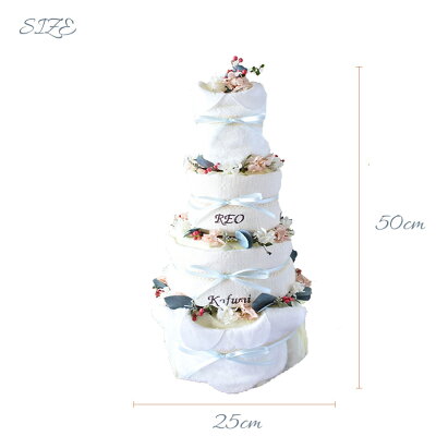 【送料無料】名入無料 生年月日入り おむつケーキ4段 オーガニック スタイ2枚 | 出産祝い 赤ちゃん 出産 ギフト プレゼント お祝い 男の子 女の子 オムツケーキ ダイパーケーキ 今治 花 プリザーブドフラワー ラッピング 結婚祝い 内祝い 贈り物 おしゃれ 誕生日
